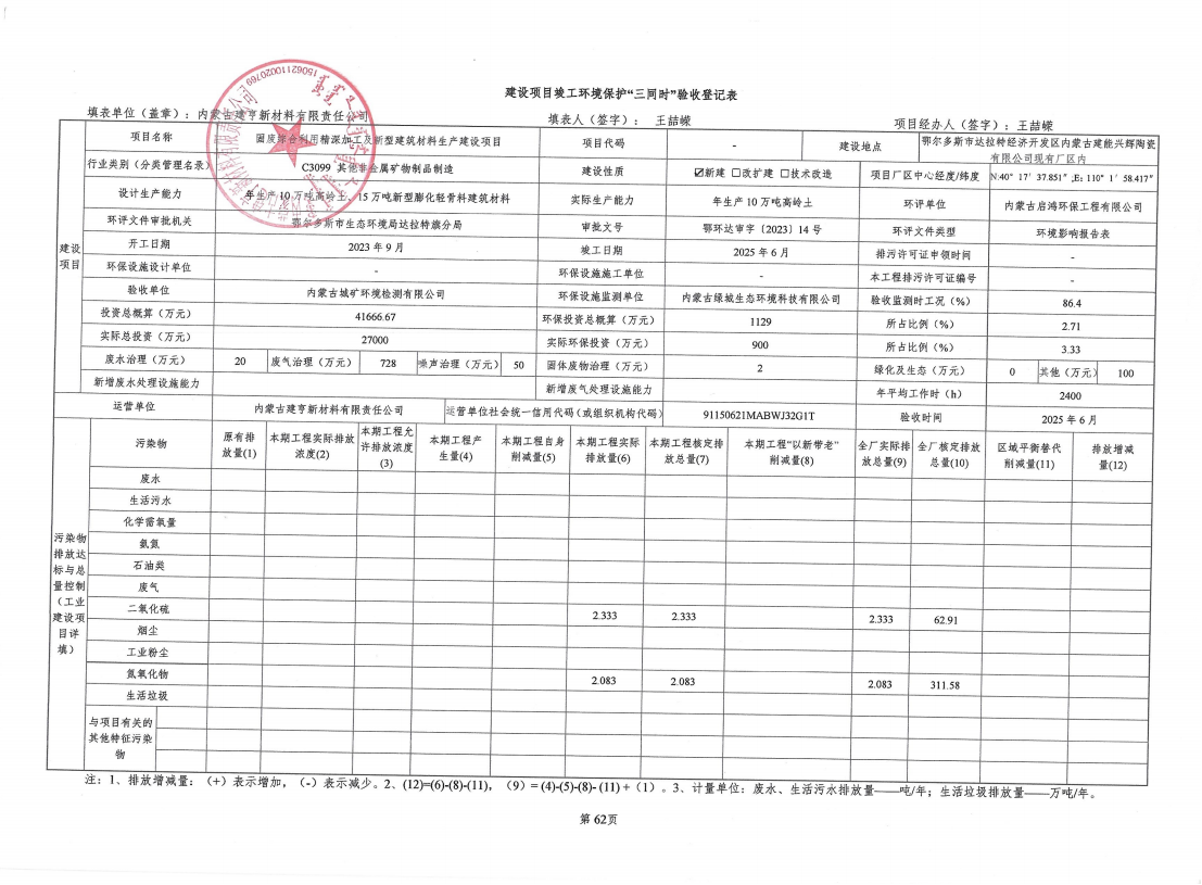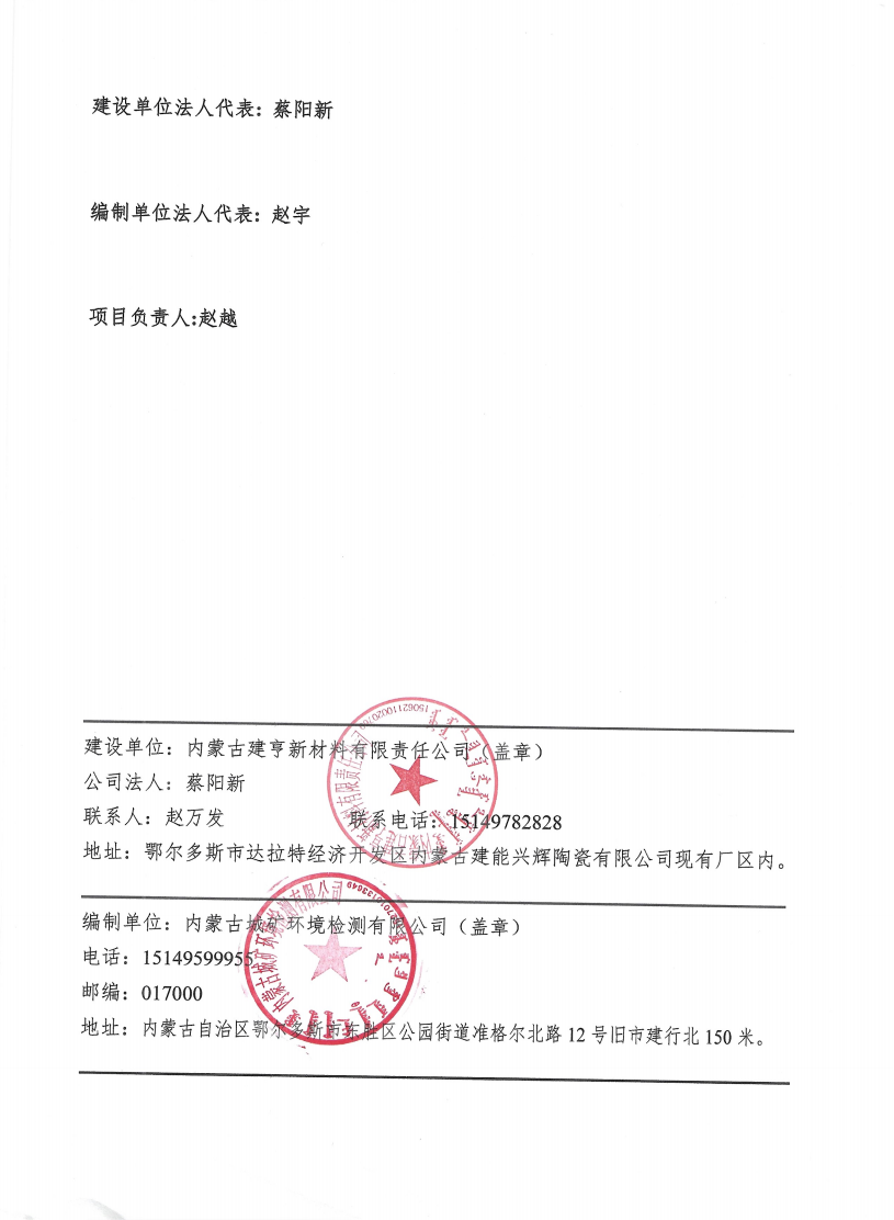 鄂尔多斯市城市矿产研究开发有限责任公司、内蒙古城矿环境检测有限公司